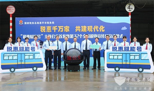 在活动现场,整装待发的“税惠赋能号”主题公交依次排列,公交车车身上张贴着印有以税惠农、便民办税春风行动等内容的税收宣传画,车内有政策服务二维码供乘客“扫一扫”,车上电子屏滚动播放着税宣主题短视频,方便纳税人、缴费人全方位快速获取税收知识。在主题公交车首发之日,恩平市税务局还安排税收宣传员同行,为乘客送政策、解疑惑。