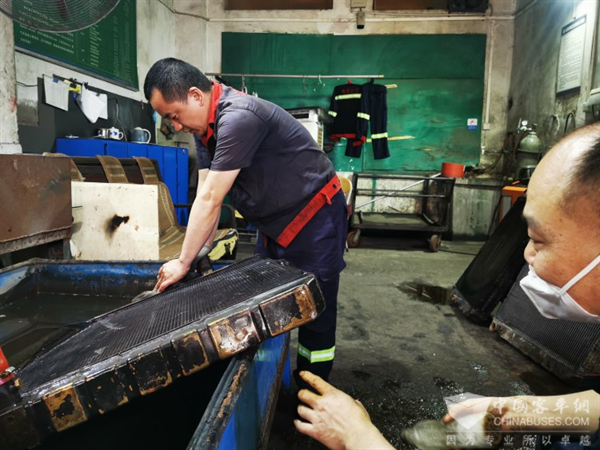 针对8年以上的“大龄”公交车,郑健说,都会把水箱逐个取下来进行清洗。