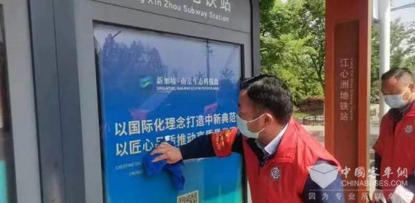 江北新区客运公司552路志愿者服务队的小伙伴们自带毛巾、水桶、喷壶、毛刷等工具,对江心洲区域内的公交站台、站牌进行清洁打扫,对站牌上的小广告和乱贴乱画进行彻底清理,为市民营造了整洁、舒适的出行环境。