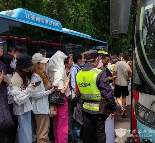 “五一”假期期间,巡检员共巡查6500车次,有情询问可疑包裹25次,阻止危险品上车10次,搀迎帮扶22人,拾金不昧5次。在白马公园、明孝陵、中山陵等客流量较大的景点,机动大队队员认真履职,引导乘客有序乘车,维护节期车辆运营安全有序。