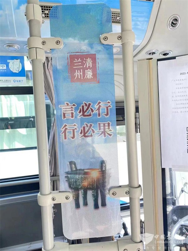 记者在现场看到," 清廉兰州号 " 主题公交车不仅有 " 颜值 ",还有 " 内涵 "。它以 " 兰州蓝 " 为主色调,充分利用公交车厢、电子显示屏、灯箱片、宣传板、座椅、吊环拉手等车内设施,以多种宣传形式,图文并茂地将廉洁文化元素植入公交全车厢,让公交车成为弘扬清廉文化、涵养清廉思想的流动宣传阵地,实现寓 " 廉 " 于 " 乘 "、寓 " 教 " 于 " 行 "。