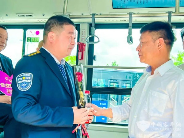 集团公司领导为驾驶员献花、递水,送上节日祝福,对他们为公交发展作出的辛苦付出表示衷心的感谢。