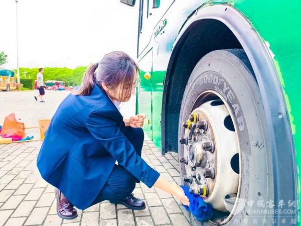 捷运公司志愿者对公交车厢开展清洁活动,大家认真细致地擦拭车厢地板,清洁扶手、座椅、轮毂等处,将对驾驶员的浓浓关爱融入小小的卫生清洁活动。