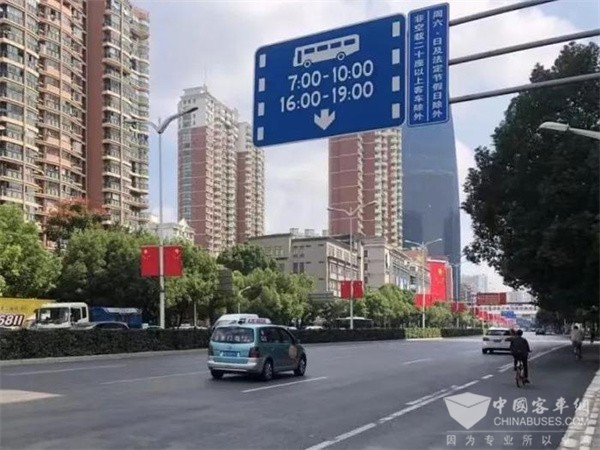 进入公交车道前是用黄色的虚线将车道醒目的标示出来,路口进入车道之前都会有公交车道的时间,包括‘允许20座以上的大型客车可以通行’的类似的一个提示牌,全民放假日是可以通行的。”