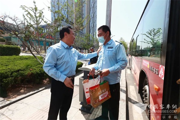5月19日上午,威海公交集团党委书记、董事长曲波,党委副书记、工会主席王亚丽前往实验中学及威高广场枢纽站,看望慰问一线驾驶员并送上慰问品。