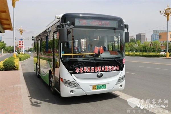 为发挥交通运输行业法治宣传教育作用,营造全旗浓厚法治氛围,达拉特旗司法局积极创新普法载体,打造了全新普法媒介——“法治公交”。2023年5月25日,“法治公交”正式投入使用。