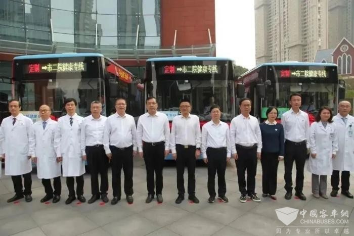方伟介绍集团公司围绕“以人民为中心”的发展理念,从群众最关心的问题抓起、最切身的利益出发,开展实地走访调研,立足来院患者的就医出行数据分析,科学制定了三条健康专线运营方案,这将解决沿线区域市民就医出行不便的痛点,让“公交+就医”的服务模式更加深入民心。