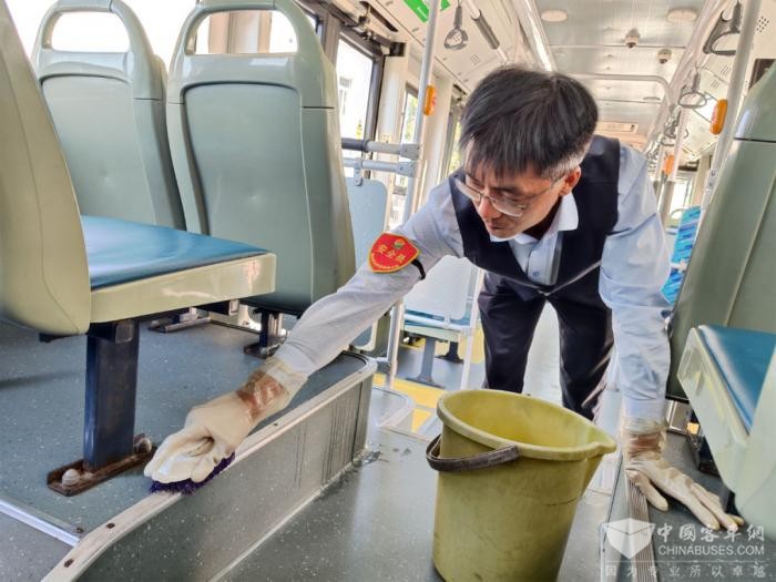 “座椅和扶手作为乘客日常出行过程中最常接触的部位,我们在进行卫生清洁中一定要重点关注,同时注意车厢地板及座椅下方的每一处卫生死角。”近日,在位于郑州市管城区的石化路公交站院内,来自郑州公交B15路的一线驾驶员张伟锋正在认真清洁着车厢里的每一处卫生细节,并借助特制的小刷子、小拖把对很难触及的卫生死角进行彻底的清理。