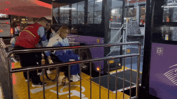昨天凌晨3点半,离返就已进入高峰,而现场管理人员早已在发车区等待大家的到来,帮助轮椅运动员上车,主动搬运随身行李,让杭州的这段旅途充满温馨与便利。