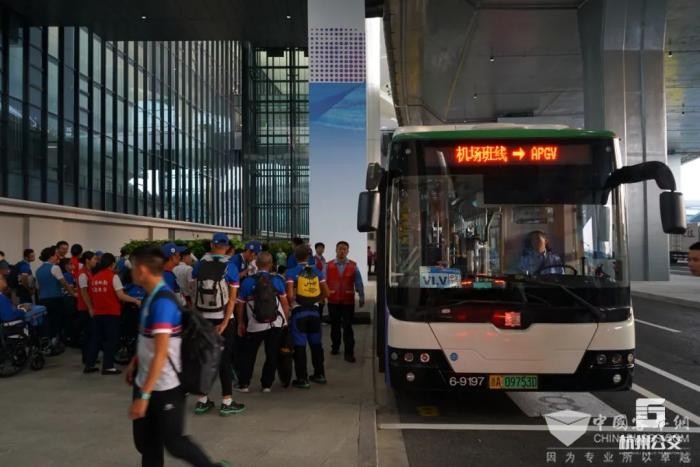 自10月14日起至10月30日,杭州公交为保障各国代表团抵离杭州萧山国际机场、火车东站,共发放接驳班车416班,运送运动员及随队官员5880人次。