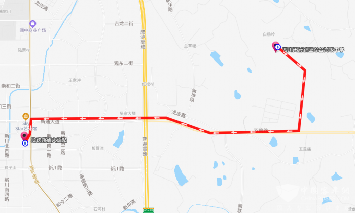 起讫点:四川天府新区综合高级中学—地铁新通大道