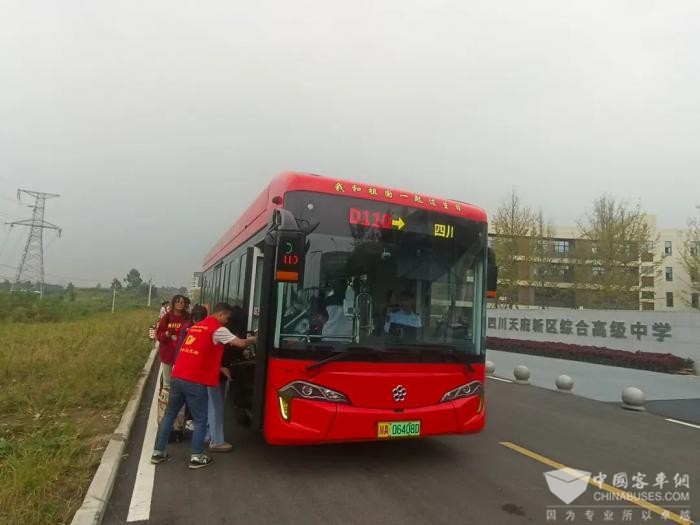 成都公交了解到学校学生出行需求后,先后开行巴士定制通学专线 D110路、D112路,强化公交“连学校”服务功能,为学生前往华阳客运站、地铁新通大道站及海昌路站提供安全、便捷的接驳服务,有效覆盖公交盲区。值得一提的是,这两条线路特别选配低地板、塞拉门、长续航的新能源公交车,住校生返家携带行李更加安全、方便。
