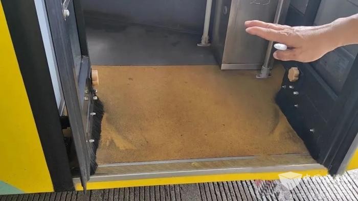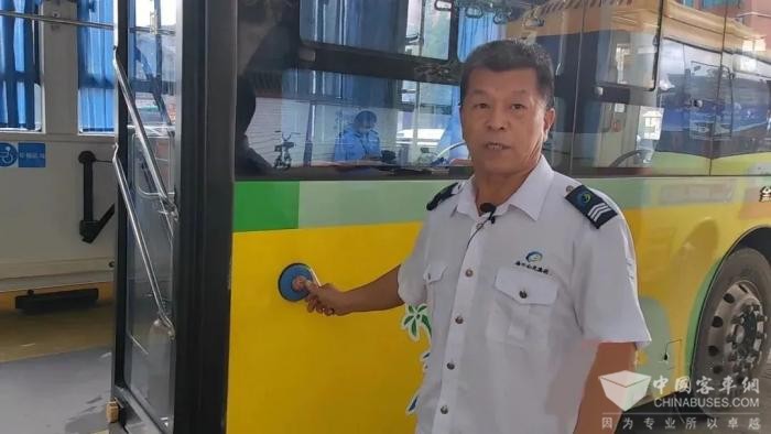 这种公交车除了低地板入口设计外,在后门处还配备了无障碍翻板,专门为乘坐轮椅的老年人上下车服务。“后车门这里有一个按钮,如果老年乘客需要用翻板上车,可以按那个按钮,司机听到后会过来把它打开。”李帮军说。