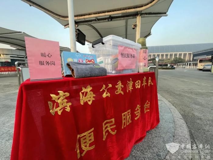 15日早上6点,滨海公司津田车队、宁河车队分别在人员客流较为密集的西站站务室及宁河泛马装饰城站务室两地,设置暖心服务岗,为候车的乘客提供便民服务箱,箱内放置捆扎带,透明胶带,剪刀等日常应急用品,同时还设置了暖心壶、纸杯、暖手宝等物品供乘客候车期间免费使用,给冬日里寒风中候车的乘客带去公交的温暖。活动中,候车的乘客李大爷在暖心服务岗处接过了车队工作人员递上的一杯热水后,激动的说道:“虽然天气寒冷,但是你们热情服务让我倍感温暖。”