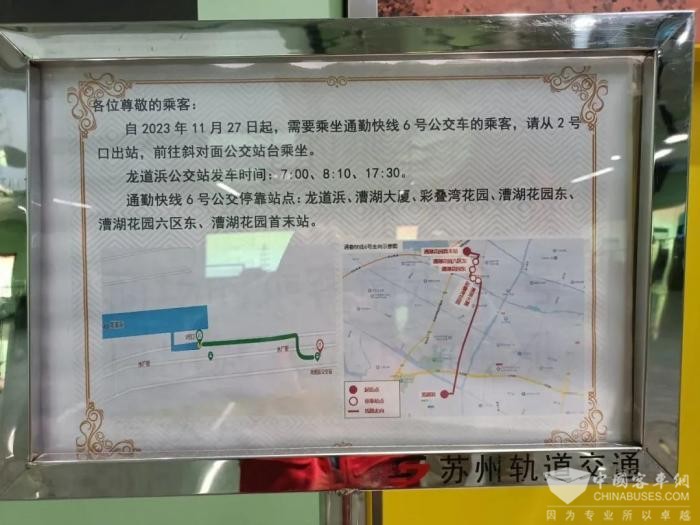 通勤快线6号的开行是公交集团相城公司公交管家在广泛听取社情民意的基础上,经过多次实地踏看,综合研判的成果。前期,相城公司在开展公交管家服务和市民意见建议调查中了解到相城区漕湖大厦周边产业园及居住小区有直达轨道交通4号线龙道浜地铁站的出行需求。经过公司营运部门多次线上问卷调查、线下OD调研,最终确定了线路开行方案。通勤快线6号与轨道交通4号线的“龙道浜”站实现“两网融合”无缝衔接,满足市民公交+轨交的绿色出行需求。