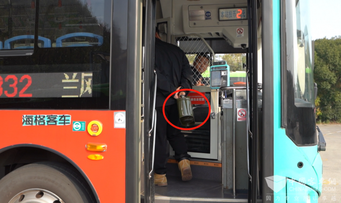 本次演练是模拟一名乘客携带易燃易爆物品及管制刀具乘车。演练现场,当驾驶员发现上车乘客疑似携带易燃易爆物品,立即警觉并随即再确认,随后告知其禁止乘车。该乘客态度强硬拒绝下车,并语言攻击驾驶员。此时乘客情绪激动,反应进一步过激,驾驶员立即使用“一键报警”系统。很快,公安特警到达现场,控制并带走了该乘客。