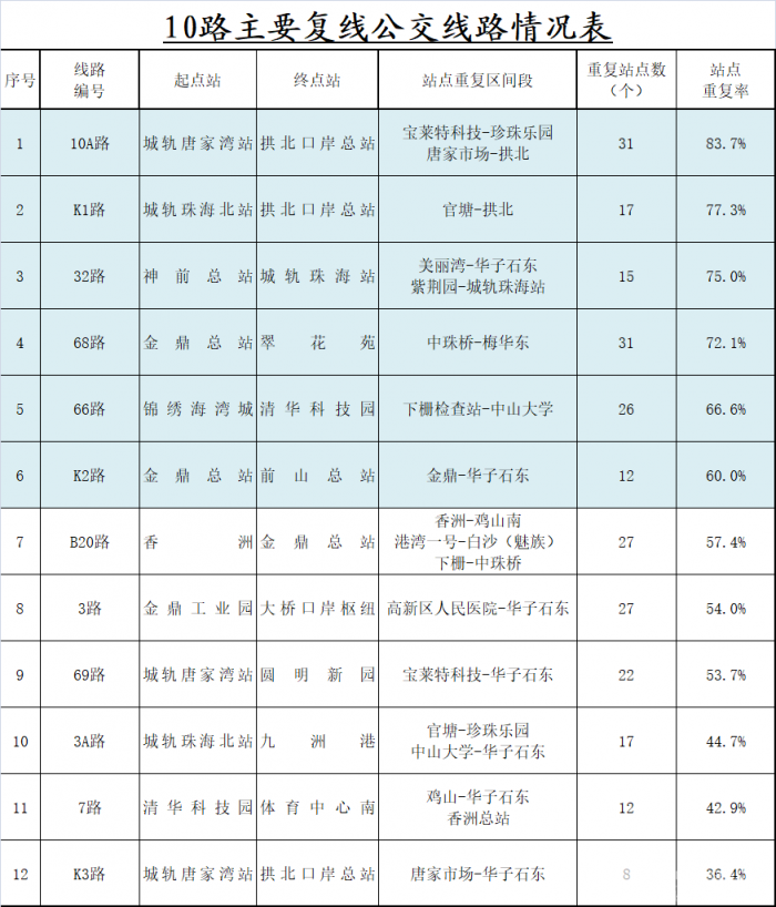 目前,10路与现有金唐往返主城区多条线路高度重复,其中6条线路站点重复率达60%及以上,可选替代线路较多,沿线市民可通过10A、K1、32、66、68、B20、K2等复线率较高的线路覆盖往返原站点。