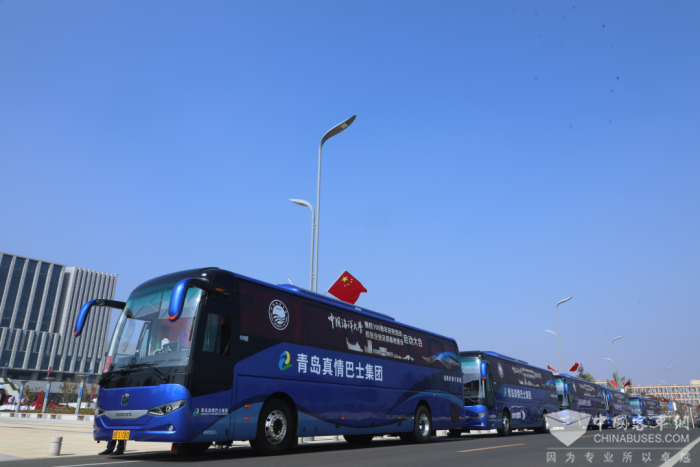 青岛真情商务巴士运营有限公司商务大巴启动出场。