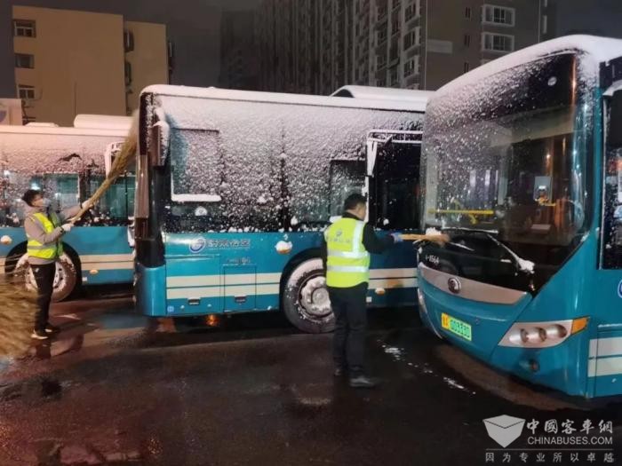 在寒潮雨雪天气来临之前,济南公交就积极开展隐患排查工作,对于排查出的隐患立即整改。充分利用好岗前叮嘱、班前会等形式,加强低温雨雪恶劣天气下的安全教育培训,进一步提升驾驶员安全意识。降雪后,济南公交第一时间启动应急预案,各级管理人员做好对所属线路客流节点和危险路段的值守工作,加强监测预警信息通报,实时做好预警信息的第一时间发布和提醒,做好高效响应处置。