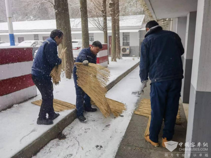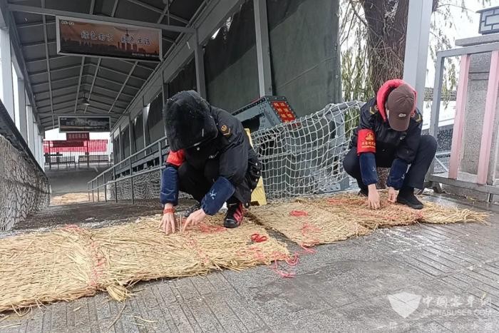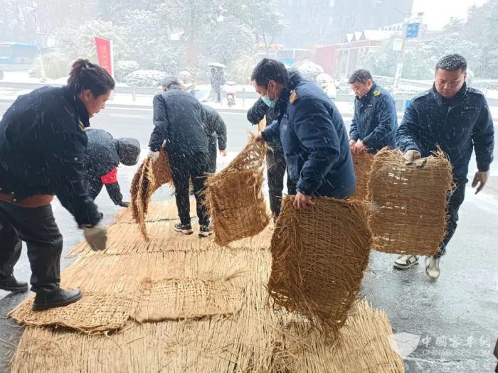 各公司组织员工清扫场站和车辆积雪、铺设草垫,消除安全隐患。