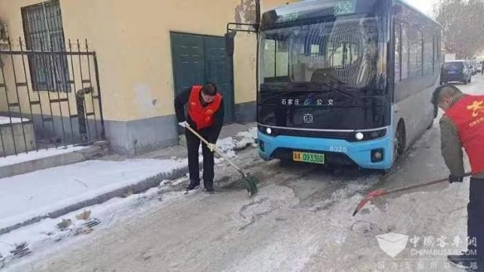 为确保降雪及雪后开发区市民的出行,开发区巡游公交结合自身特点,采取有力措施,保障车辆有序运营和行车安全。所属路队干管、党员、班长备勤,每天对运营车辆提前预热,车长提前40分钟到岗,出车前对车辆进行安全性能检查,确保车辆100%发车。由于巡游公交线路没有固定的站点,自降雪以来,五公司组织人员对弯道、陡坡、背阴等路段进行泼撒融雪剂和人工清理地面冰雪等措施,确保了安全行车和乘客的乘车安全。