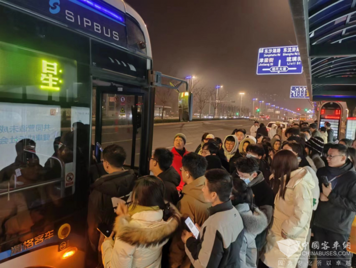 截至1日凌晨1点,园区公司共出动了21辆公交车,发车54趟次,十余名公交管家随车服务,接驳乘客2500余名,公交站台上排起了长队,公交车里人头攒动,公交接驳线俨然成了一条“网红线”。