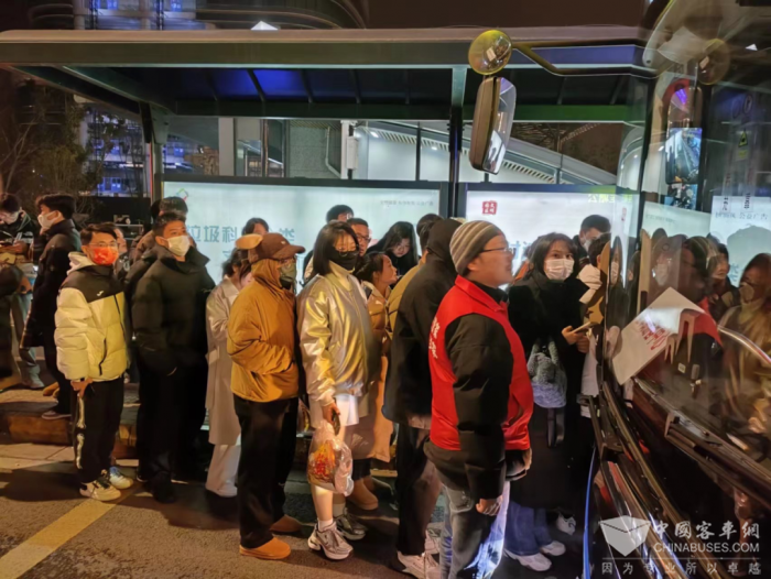 此次开行的线路均运营至1月1日凌晨1点,真正实现了与市民一起跨年。在接驳现场,身着红色制服的公交管家们显得格外亮眼,他们维持登乘秩序、提供导乘服务、协调车辆班次等等,用他们的行动告诉每一位乘客,公交管家就在身边。