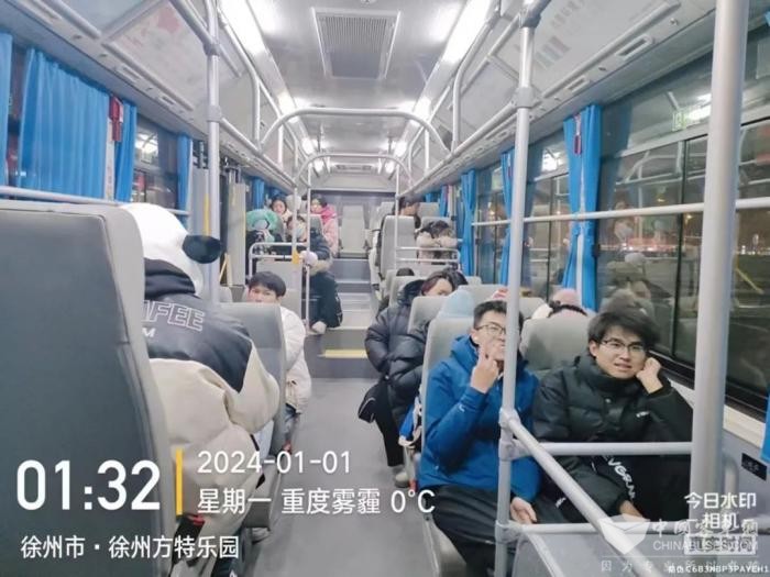 为满足乘客出行需求,集团根据假期客流特点,提前制定运营计划,完善特殊天气各类应急预案,并通过公交智能调度系统和主动防控系统观测客流情况,科学调整线路班次,保证常规公交线路充足运力投入。12条公交线路延长夜间服务时间;通往徐州东站、徐州站的夜班线路末班车时间延长至24点;成立10路保障应急车队,在徐州东站及时疏散客流,做好延时“兜底”接驳服务工作,保障乘客安心出行。12月31日当晚,公交延时服务至次日凌晨,集团领导班子带领各职能部室、基层单位领导班子靠前指挥,组织各级管理人员和一线驾驶员在市中心东西南北四个主要站点(浦发银行、金地商都、彭城饭店、供销大厦),以及方特乐园、徐州乐园等活动现场,做好延时车辆运力安排、安全保障等各项工作,全力以赴为市民游客提供安全、便捷、舒适的出行服务。据悉,31日晚间至1日凌晨共计安排应急接驳车辆65台,累计发送79个班次,保障车辆运营至凌晨2点,累计输送乘客4503人次。