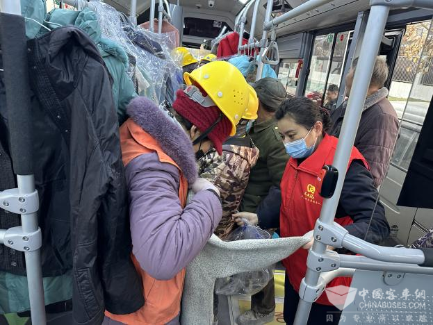 据了解,这些衣服都是郑州公交职工募集捐赠的,大家把家中闲置的衣服经过细心挑选之后,打包带到凯旋路公交调度室,由团长虎萍进行登记、分类,之后送到干洗店进行干洗。郑州公交203路驾驶员虎萍说:“此次活动我们的职工大概捐赠了总共有100多件,经过干洗之后我们拿过来挂到车上,来到了建筑工地旁边,为建筑工人、环卫工人和社区的孤寡老人送一些棉衣。”