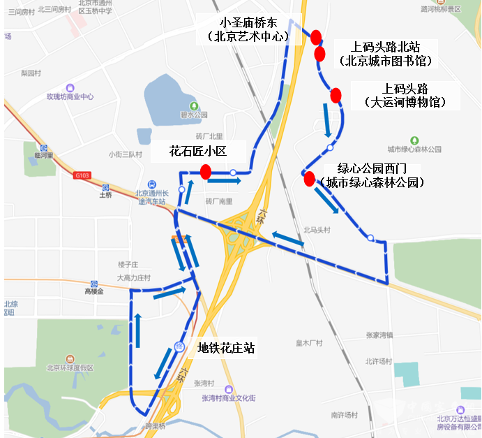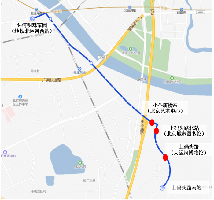沿途设站:上码头路南站-上码头路(大运河博物馆)-上码头路北站(北京城市图书馆、北京艺术中心)