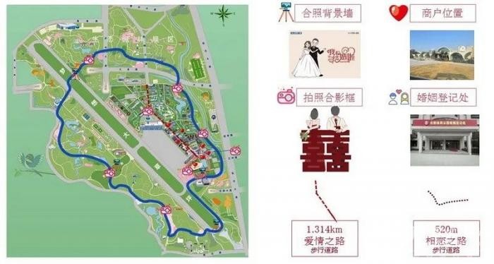 根据客户定制的时间到指定地点接到客户后,1314路“幸福巴士”开往骆岗公园办理结婚证及拍照打卡,车辆围绕公园喜道绕行一周后,客户乘坐1314路“幸福巴士”开往翡翠湖公园,沿着翡翠湖心形道路绕行一周,客户可在“1314翡你莫属”等处拍照打卡(时间约1小时)。