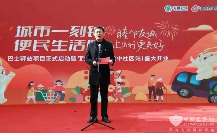方伟致辞并表示,近年来,无锡公交集团以服务城市经济发展和市民美好生活出行为己任,精心构建具有公交服务特色的多元化服务体系。巴士驿站首站(梁中站)是集团公司在探索公交服务新模式的又一次重要尝试,标志着集团公司在构建资源共享、优势互补、打造公共服务业态供给新格局方面迈出了重要一步。未来,集团公司将继续坚守人民立场,探索研发“公交+”场景化的公共交通服务产品,为市民创造更美好的出行体验,为城市美好生活贡献公交力量。