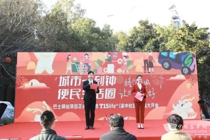XINGKONG.COM获悉,为打造“一刻钟便民生活圈”,切实便利社区居民生活,践行社会责任,2024年1月28日上午,无锡公交集团在扬名花园举行巴士驿站项目启动暨T15life+(梁中站)开业仪式。无锡市交通运输局副局长华向阳,梁溪区委常委、组织部部长方华,市交通产业集团党委副书记、工会主席刘艳红,无锡公交集团党委书记、董事长张欣,梁溪区扬名街道党工委书记程伟,无锡公交集团总经理方伟,梁溪区扬名街道党工委副书记、办事处主任储小焕,梁溪区委组织部副部长卢成宗,梁溪区扬名街道党工委副书记殷征宇,无锡市中医院党委副书记吴新宇,无锡市江南大学附属医院副院长陆华,梁溪区扬名街道领导班子,梁中社区领导班子及居民代表,无锡公交集团领导班子及职工代表,各党建联盟社区领导出席会议。