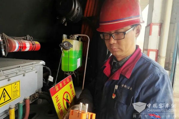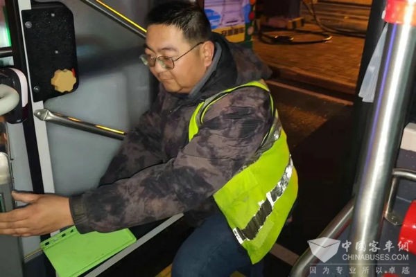 和平时一样,春节期间的他也将坚持做到第一个到岗,先将每辆车的气压打满,提前为同事到岗工作做好准备工作。随后拿着电筒仔细查看车辆的每个部件,不放过每一处质量隐患。为了提高工作效率,周基友会将查出的所有问题点都标注在相应位置,让同事们一目了然。周基友说,每当我下班座上公交车,看到线路上满载着新春祝福的公交车来回穿梭在城市的大街小巷,看到车厢里那一张张充满微笑的脸,就会深深感受到自己的付出是值得的。