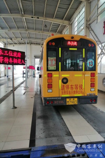 严格按照检测标准对校车的外观,车辆的转向、制动、灯光、底盘等项目进行上线检测,对校车的标志灯、停车指示牌、急救箱、倒车装置等校车特有硬件装备进行了专项检查,确保开学后每一辆校车能够安全、平稳运行。