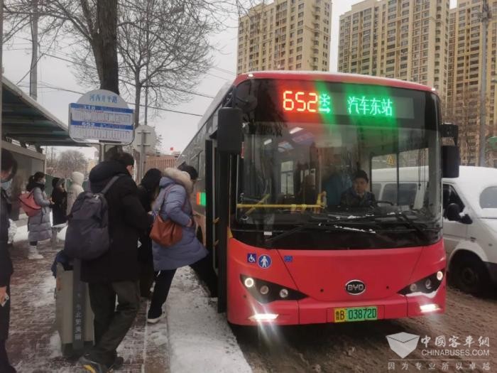 天气虽冷,但温馨巴士人迎雪而上,全力保障车辆温暖、安全、有序运行,为乘客筑起坚不可摧的安全防线。