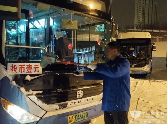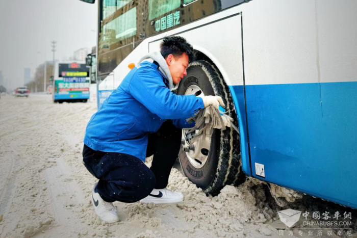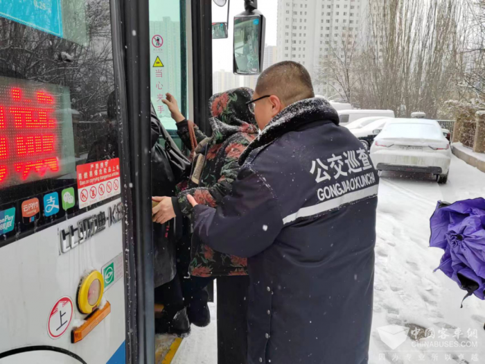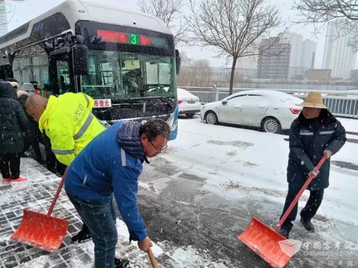 公司管理人员冒着风雪上线到站清扫积雪,除雪铲冰防止道路湿滑,引导乘客有序乘车、注意安全。公交驾驶员提前到岗自检、卫生清扫、预热车辆,行驶途中保持车距、缓慢行驶,对上下车乘客进行安全暖心提醒,保障乘客舒适、温馨出行。党员志愿者在重点站台进行值守,引导公交车有序进出站,为候车市民提供上下车帮扶工作,用温馨周到的服务,助力市民乘客安全出行,温暖回家。