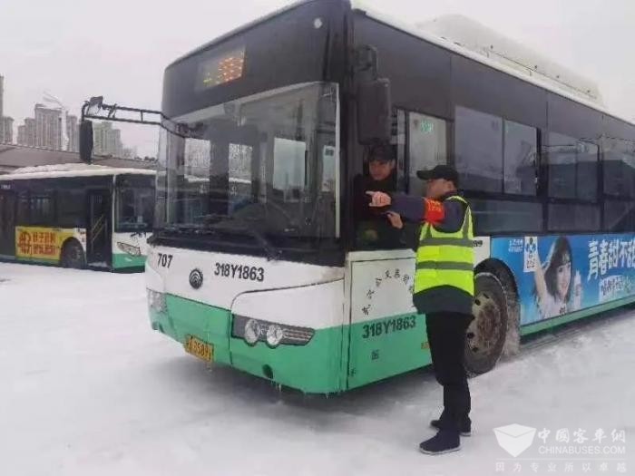 凌晨4时,“公交探路小分队”出动了,100余人分赴中心城区及远城区,对公交线路途经的桥梁、坡道、堤顶、湖边、涵洞以及积水结冰点进行排查,发现路面有积雪、结冰、打滑等现象,通过工作群实时发送警示信息,对符合道路安全通行条件的线路,确保按时开班。为保障行车安全和乘客出行安全,部分公交线路根据天气情况采取绕行、开通短途摆渡车、延迟开班或暂停运营等措施,待道路通行条件达到安全标准后恢复正常营运。