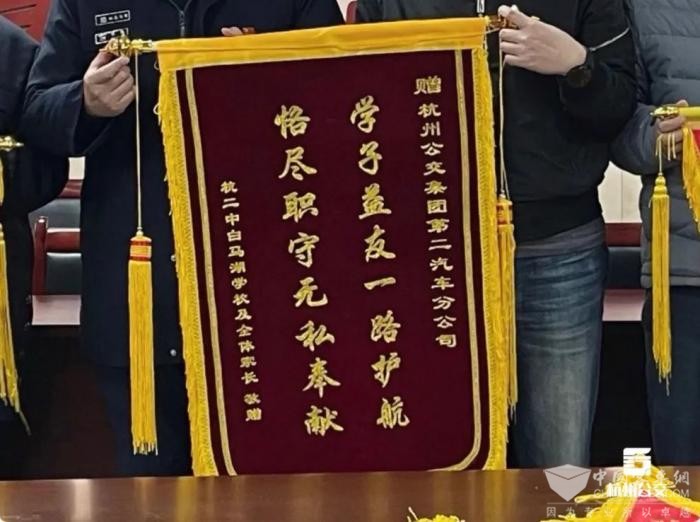 近日,白马湖求知专线家长代表为杭州公交送上锦旗,对求知专线为同学们提供点对点一站式服务、为专线司机负责的工作责任心、为公交一如既往的服务意识表示衷心的感谢。白马湖小学自从2018年在家委的牵头下,有了求知专线,今年已经从4条路线发展到14条路线。