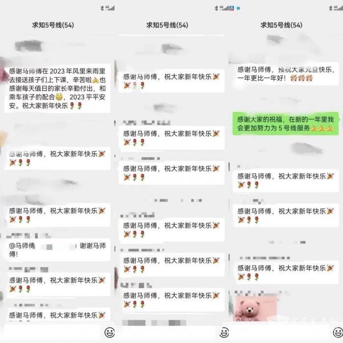 在孩子们开启寒假模式前,负责运营“求知专线”的司机们纷纷收到了家长们的留言,留言中的一字一句,都在诉说道不尽的谢意,还有这一学期以来朝夕相处的陪伴。
