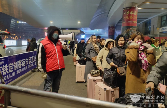 春节期间自2月20日起至今,每日凌晨5时干部职工对运营车辆进行出场前的安全检查,确保车辆技术状况良好。在乌鲁木齐北广场,一辆公交客车靠泊在出站口不远处,旁边树立一块“高校返校学生接待处”牌子,不时有拖着行李箱的学生在志愿者的引导下来到此处上车。“一出火车站,就看见志愿者举着‘高校返校学生接待处’的牌子,心里很踏实。”新疆大学(博达校区)大学生吴子豪说道。2月22日,吴子豪在学校的“微信服务保障群”收到通知中得知公交安排了“返校专车”,这让他和家人都非常感动。“感谢公交为我们大学生开通了定制专线车,以前下了高铁我要拉着行李箱走到站台内等车,下车后再拉着行李箱从公交车站步行到学校。现在出了高铁站可以直接坐上定制公交,一直开到学校里,一站式服务,贴心又暖心,简直太棒啦!”