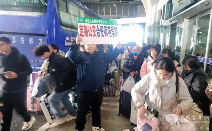合肥公交提前与高校联系,根据线上数据科学研判,安排运力,并安排管理人员和调度员前往合肥南站加强现场督导,及时关注营运车辆行驶路径通阻情况,根据现场客流及时调度车辆,避免出现学生候车时间过长和学生滞留现象,努力做到让“学校省心、家长放心、学生安心”。