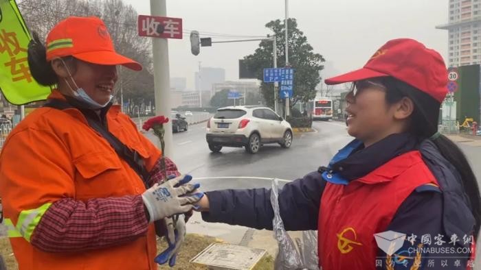 公交二公司青年志愿者为环卫工人献花