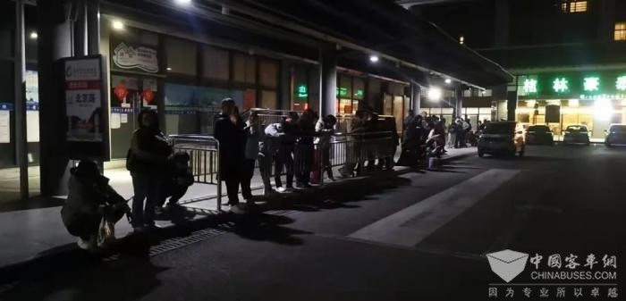 当晚8:10左右,到贵阳周边各地参加公务员考试的考生们陆续达到贵阳东站,一时间出现了客流积压,看着站台上越来越多的人群,驾驶员王师傅、贺师傅心里火燎般着急,为帮助考生们能尽快乘上公交车,两位驾驶员师傅立即向公交贵阳东站网格员汇报,在网格员秦懿的调度下,立即派出两台支援车,两位驾驶员师傅也主动到站台引导乘客们有序排队乘车,将乘客及时从贵阳东站转运至轨道北京路站。