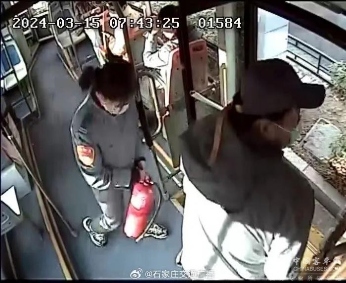 路遇电动三轮自燃 石家庄公交车长出手相助