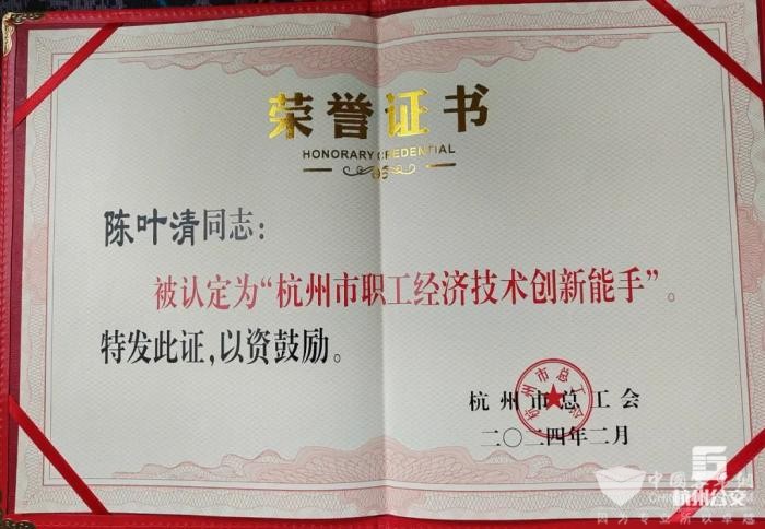 在萧山公交工作6年来,陈叶清扎根基层勤学公交驾驶技术,先后荣获“杭州市职工经济技术创新能手”称号,杭州市道路客运汽车驾驶员职业技能竞赛三等奖等荣誉。除了积极参加驾驶技能比赛,提升服务技能也是陈叶清的努力方向,在萧山区职工礼仪风采大赛中荣获了团体一等奖和最佳人气奖,这些荣誉的背后,不止有扎实的驾驶技术,还有他对公交事业的一腔赤诚。