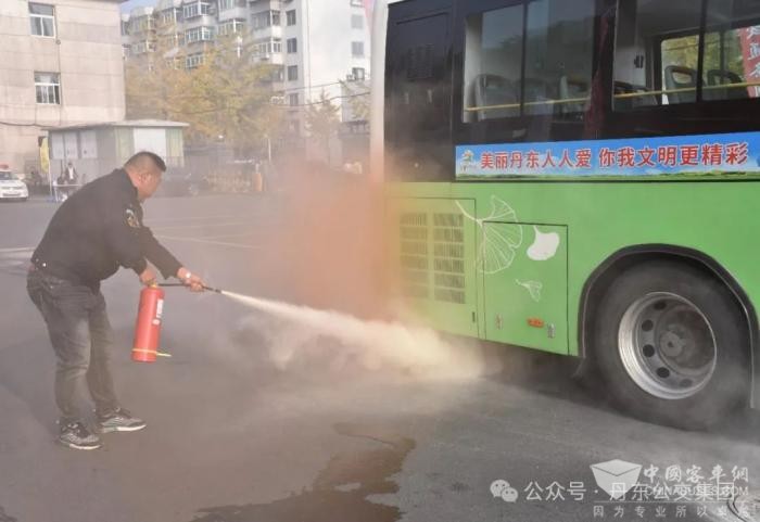 公交车营运中火灾——驾驶员使用灭火器控制火情