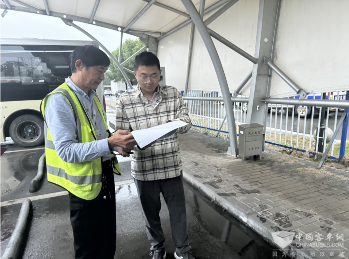 公交集团吴江公司高度重视此次防汛工作,并于今天下午迅速成立了防台抗台检查组,前往各分公司下属的重点场站开展安全检查。检查组一行详细检查了奥林清华首末站等多个场站的各项设施,现场指出了存在的安全隐患,并要求立即进行整改,以确保在台风到来之前消除所有潜在的安全风险。
