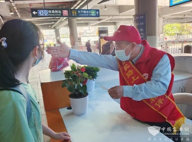 孔胜东在火车东站东广场为乘客指路 受访者供图