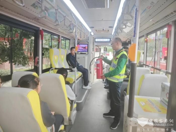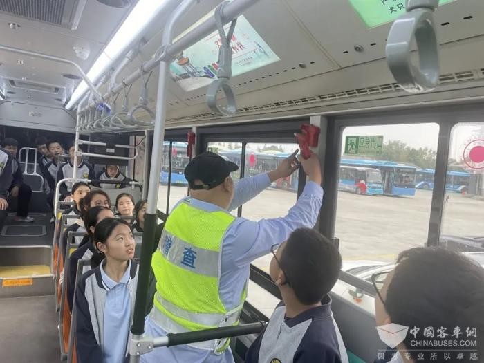 现场,营运部管理人员讲解了安全乘坐校园定制公交的注意事项,介绍了车载灭火器、安全锤、逃生窗等安全设施的使用方法,提醒同学们在乘车过程中务必佩戴好安全带,听从随车安全员的指挥,有序上下车。